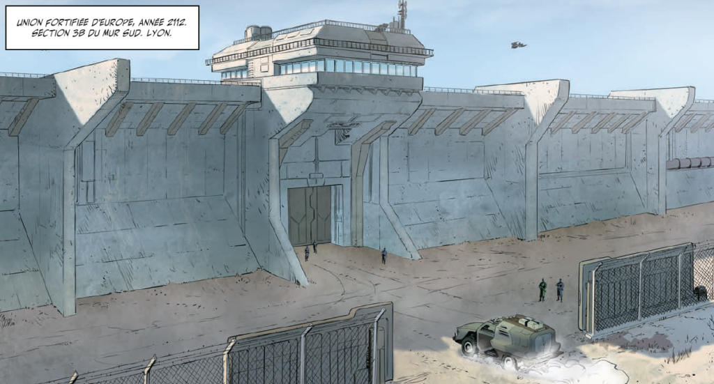 Même équipé d’une machine à voyager dans le temps, on n’aimerait pas aller faire un tour dans la France du 22e siècle : en 2112, le réchauffement climatique a coupé le pays en deux. Au nord du mur (car il y a un mur, c’est-à-dire une grande ligne de fortifications érigée de La Rochelle jusqu’aux Alpes), si l’on excepte la canicule quasi permanente, la population vit dans des conditions matérielles proches des nôtres actuellement ; au sud, c’est une autre histoire : toute la zone méditerranéenne est peuplée de réfugiés climatiques, c’est un vaste territoire aux mains de milices armées. Un jour, un incendie spontané gigantesque vient bouleverser cet équilibre précaire : une foule de gens du nord est contrainte de chercher refuge dans le sud. Parmi eux, Nathan, un officier en faction sur le Mur, et sa fille Léa, 16 ans, qui souffre de graves problèmes respiratoires…