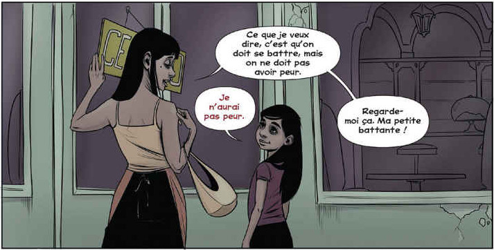 Le scénariste ne néglige pas de justifier l’angle de la lycanthropie sous lequel il a choisi de raconter l’histoire : même si elle s’interprète à un niveau métaphorique, la présence des garous est étayée par un lien qui, pour le coup, rattache moins le livre au folklore mexicain qu’aux légendes indiennes (les bestioles à crocs descendent d’un loup gigantesque, présent dans le récit). Un maillage thématique finement tissé, hélas contrebalancé par une narration parfois décousue, heurtée (et ajoutons au passage que les tournures de la traduction française ne sont pas toujours heureuses). Néanmoins les personnages, puissants, le trait magnifique de Caitlin Yarsky et la mise en page dynamique sauvent largement la mise et nous font guetter l’arrivée du prochain tome de cette saga épique, sanglante et féministe.