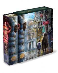 Annonce de sortie : « Après Le Grand Livre pop-up de Poudlard, ce nouveau pop-up géant, impressionnant par sa taille et son ingéniosité, propose de redécouvrir le Chemin de Traverse tel qu’il apparaît dans les films Harry Potter. Un ouvrage illustré somptueux à parcourir en compagnie des héros de la saga, pour observer sous toutes ses coutures la célèbre rue commerçante, ses enseignes et bâtiments mythiques, ainsi que ses alentours: la boutique de Farces et attrapes des frères Weasley, Fleury et Bott, Ollivander, mais aussi la voie 9 3/4 ou encore le ministère de la Magie. » Gallimard Jeunesse