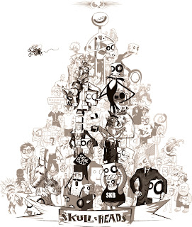 J’ai appelé ça les SKULL HEADS et j’ai désigné 9 gagnants. Je comptais faire un T-shirt avec leurs 9 versions de Joe mais j’ai finalement dessiné un visuel avec toutes les participations et j’ai offert le T-shirt aux gagnants… J’ai par la suite organisé d’autres évènements de ce genre.. dans le but de créer des galeries virtuelles sur mon site, et afin de montrer un petit échantillon de la créativité et du talent qu’on peut trouver dans la blogosphère.