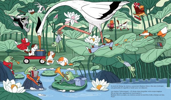 Cet album est magique, il grouille de vie, de personnages et d’éléments naturels de décors tous plus merveilleux et sympathiques les uns que les autres avec tous ces animaux légèrement anthropomorphisés et beaux. Un album indispensable : foncez ! Illustrations © le Seuil jeunesse. tous droits réservés. Merci